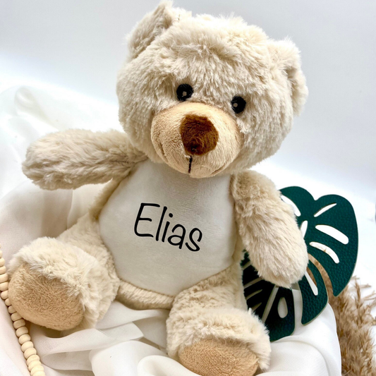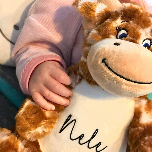 Our selection ranges from engraved wooden toys and cuddly toys with birth dates to personalized baptism posters and gift boxes.