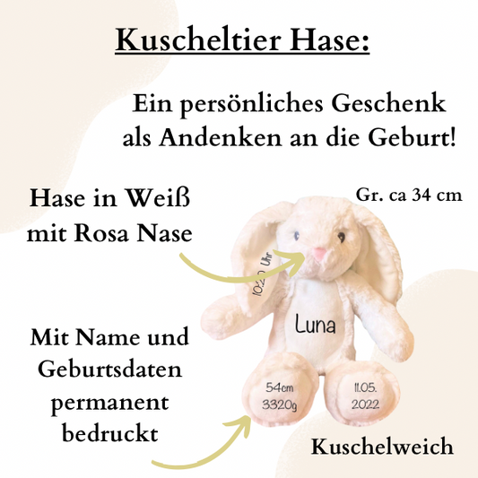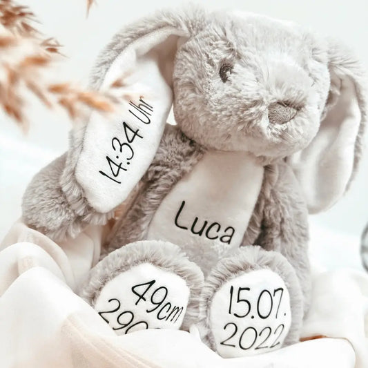 Cuddly toy rabbit personalized with name and date of birth / Easter gift