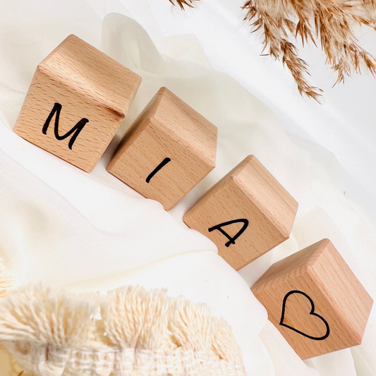 Engraved wooden cubes with names | Personalized wooden baby gift