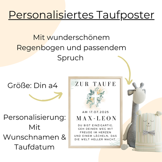 Personalized baptism poster with name & date – baptism gift with rainbow – 3 frame colors